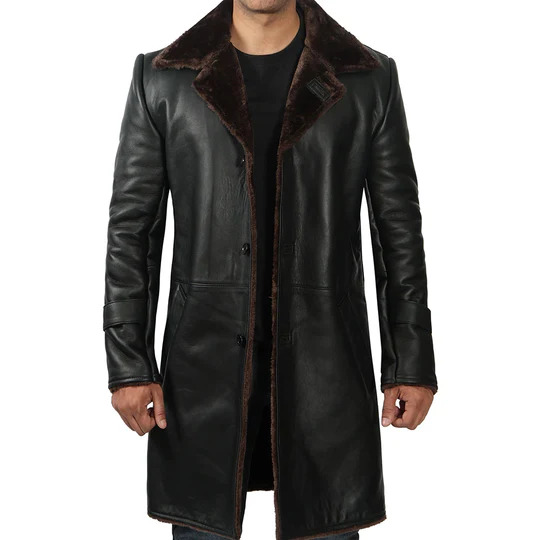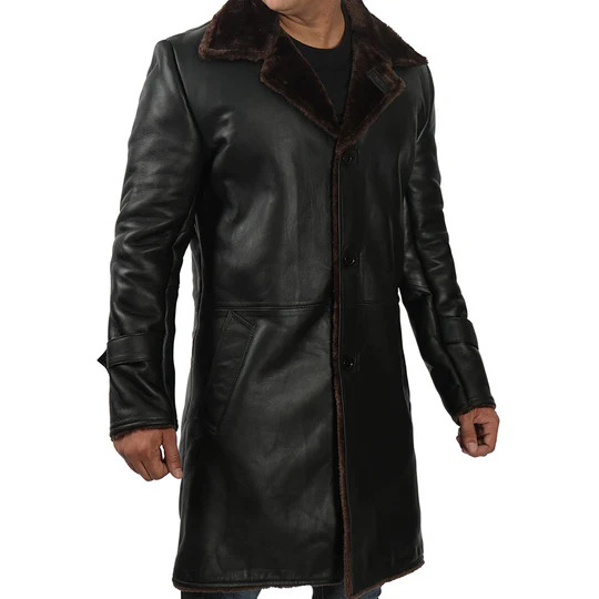The Black Long Real Shearling Leather Coat will elevate your winter ensemble. This elegant black coat is made from premium real leather and is intended to be warm and fashionable at the same time. It’s perfect for cold weather because of the soft shearling lining, which adds another layer of comfort. This coat’s long length, button-up fastening, and useful pockets make it the ideal combination of style and utility. Its classic style guarantees that you’ll always turn heads, whether you wear it with business or casual attire.