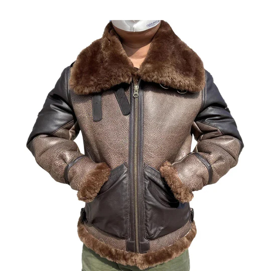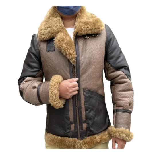 Men’s Pilot Short Mixed Colors Motorcycle Shearling Jacket: This eye-catching garment blends style and utility in a distinctive way. This boldly colored jacket is made of high-quality leather and is sure to turn heads. Its luxurious shearling lining provides outstanding warmth and comfort, making it the perfect choice for chilly journeys. Its functional front pockets make it easy to carry necessities, and its short pilot shape gives it a modern touch.